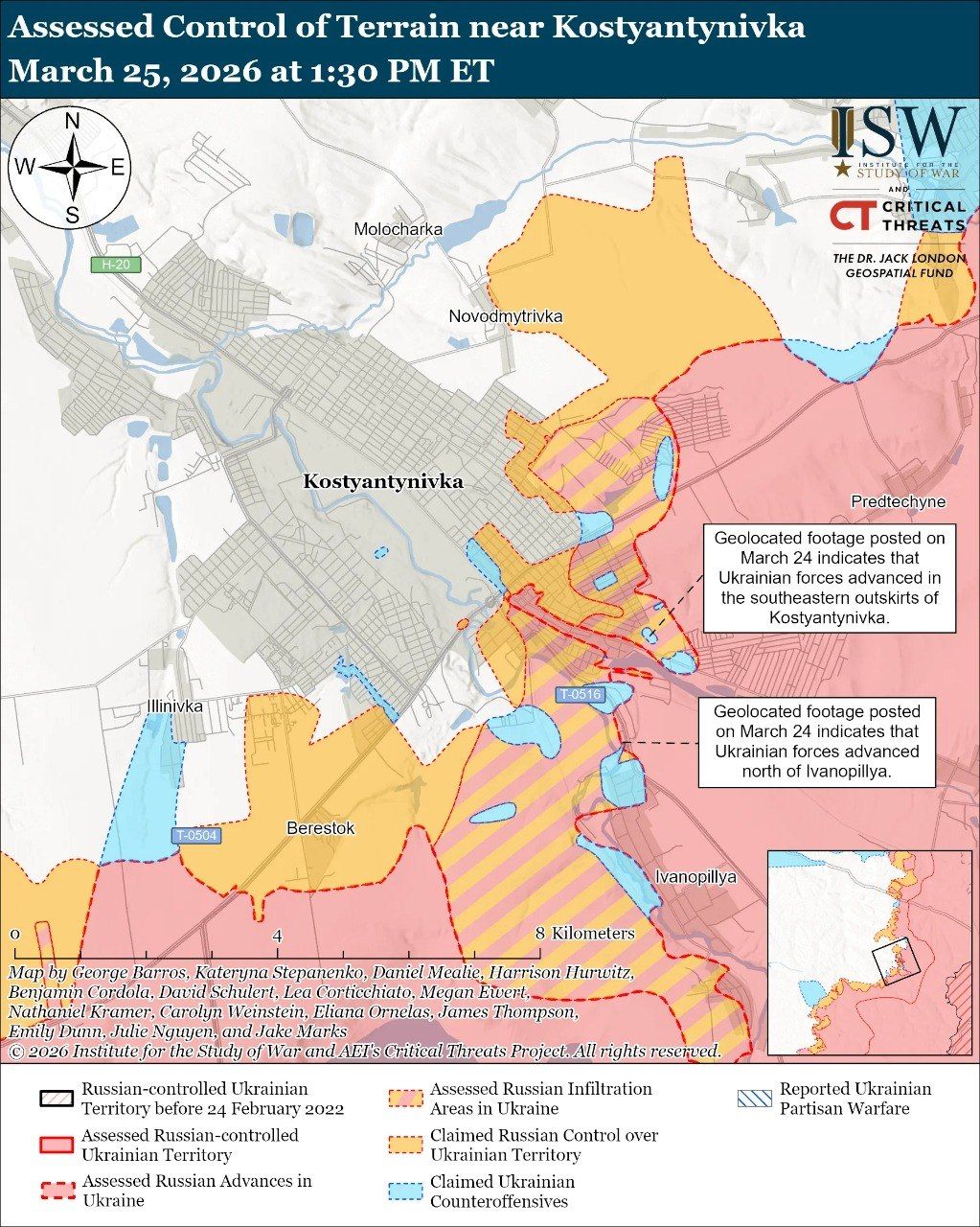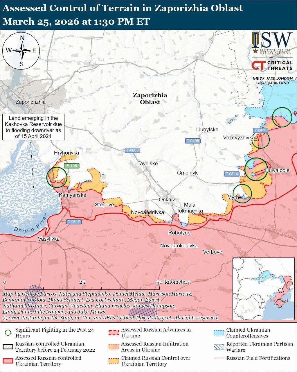 Карта боевых действий в Украине на 26 марта 2026 года