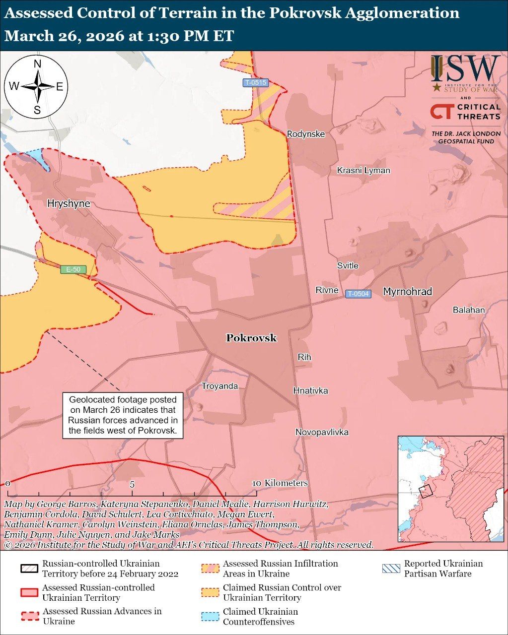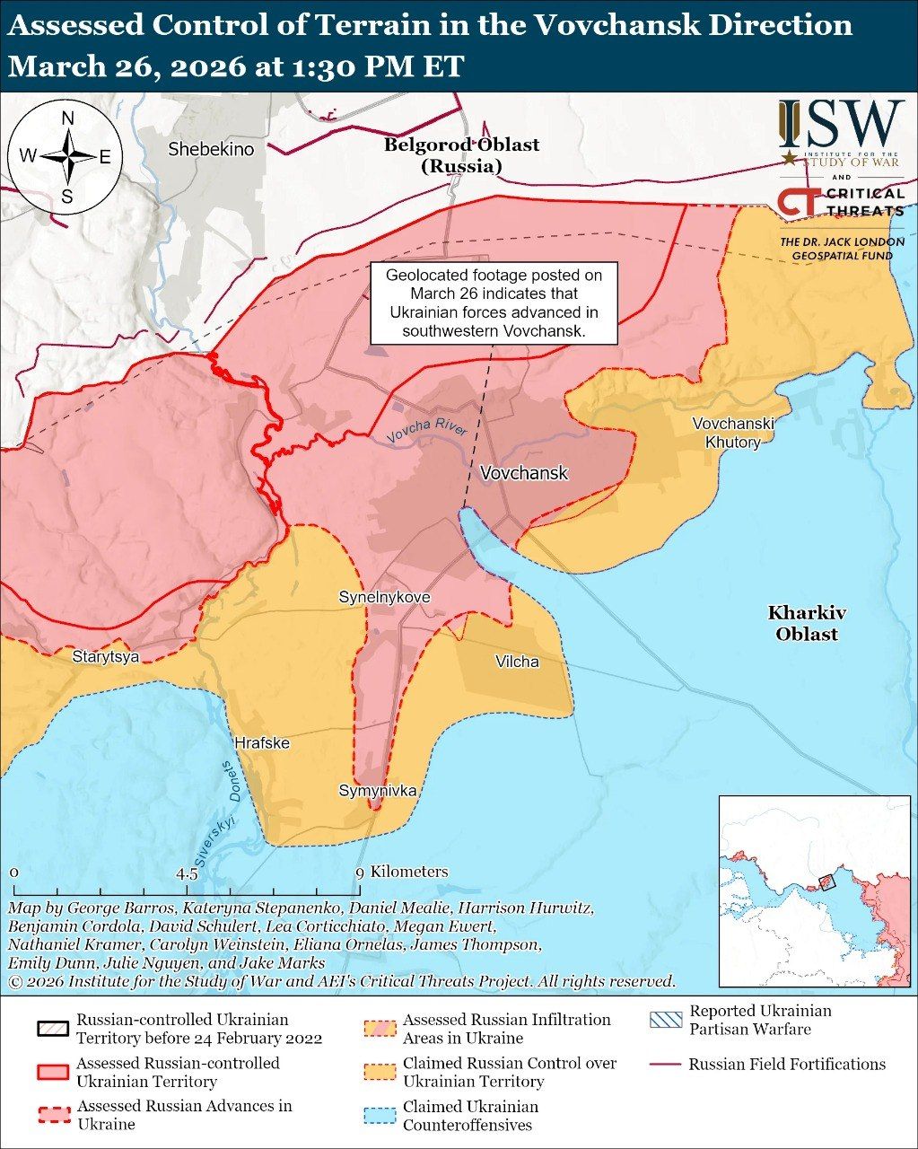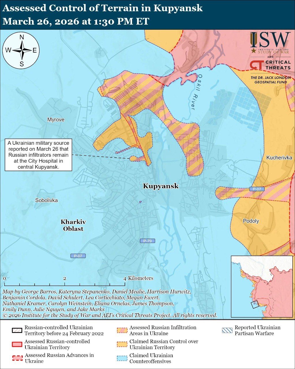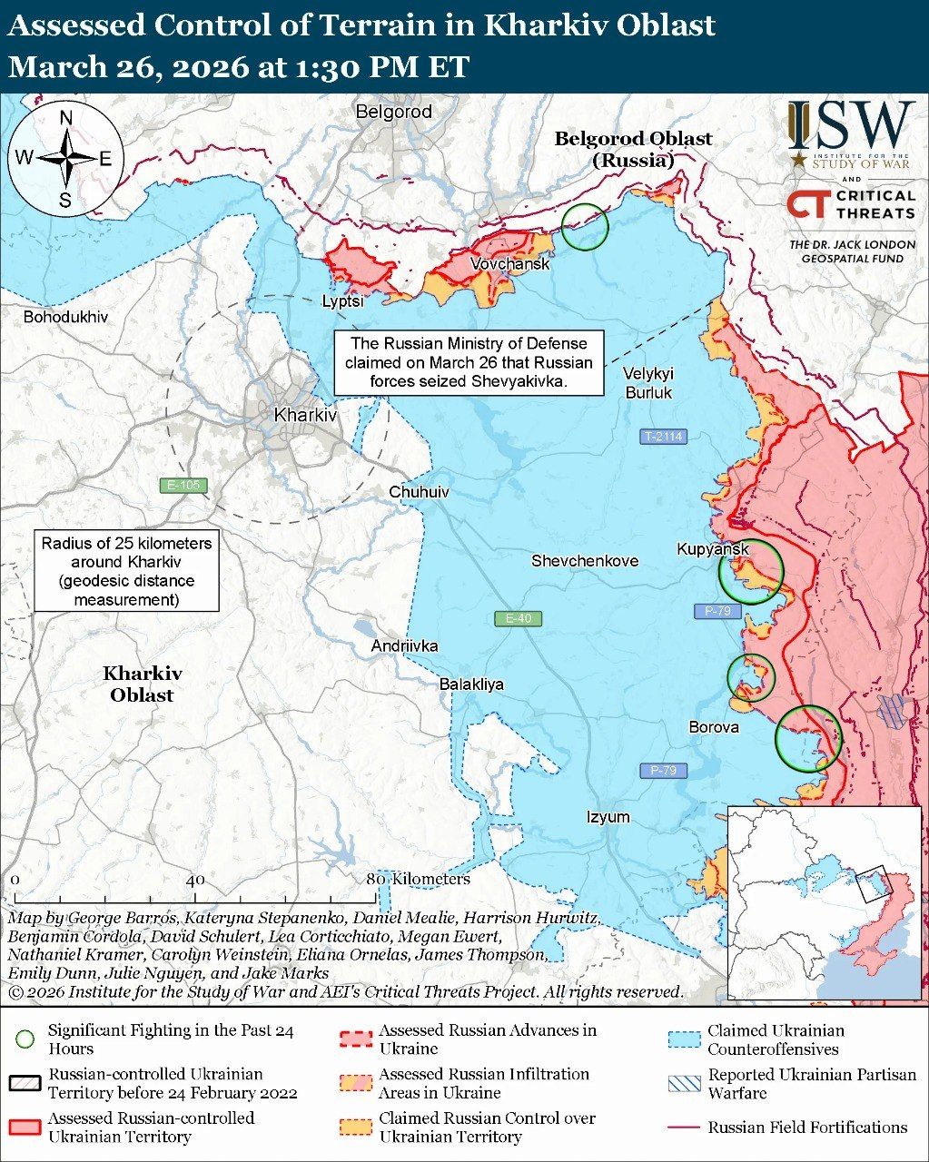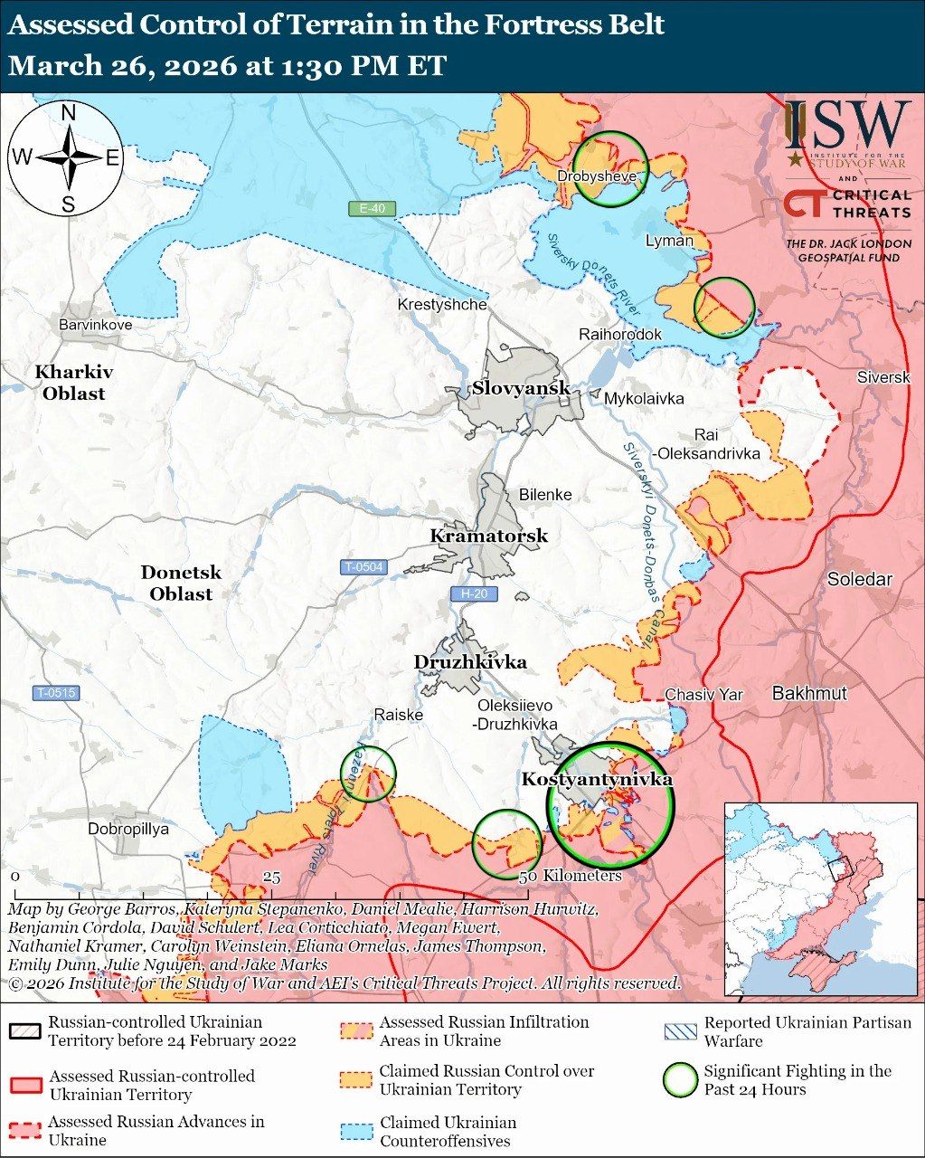 Карта боевых действий в Украине на 27 марта 2026 года