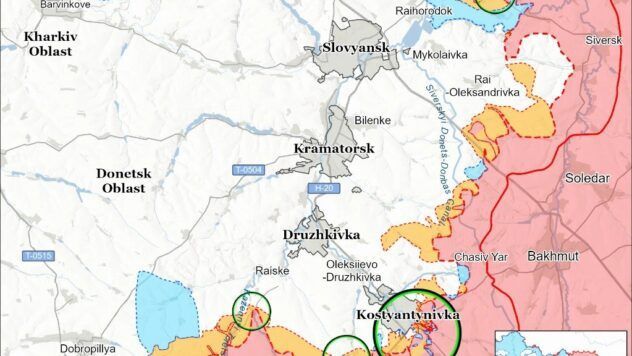 На Константиновском направлении произошло 23 атаки вблизи Константиновки, Плещеевки, Ильиновки, Берестка, Степановки, Новопавловки и Софиевки.