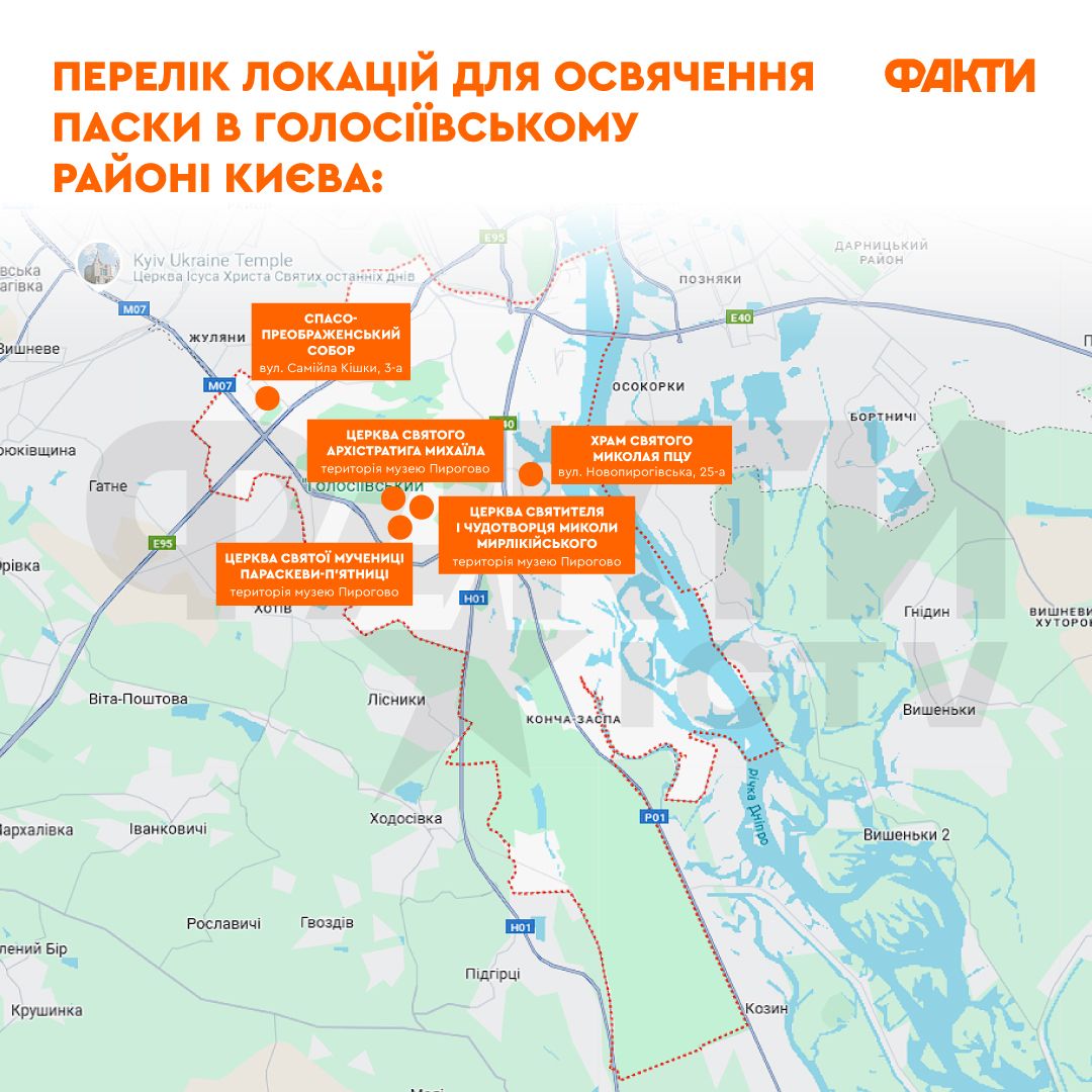 Перечень локаций для освящения паски в Голосеевском районе Киева: