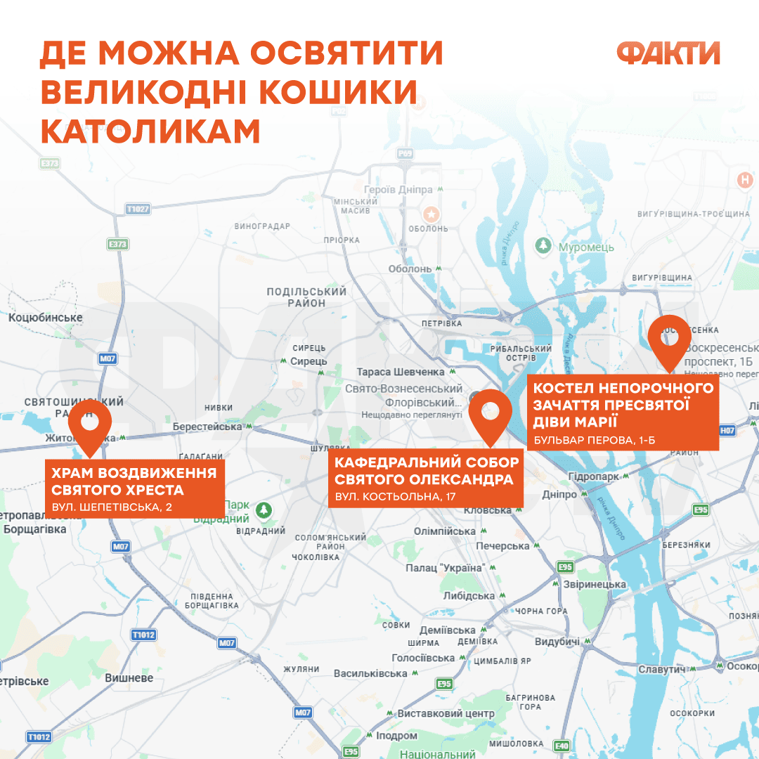 В Киеве действует несколько основных римско-католических приходов, где проходят пасхальные богослужения и освящение корзин: