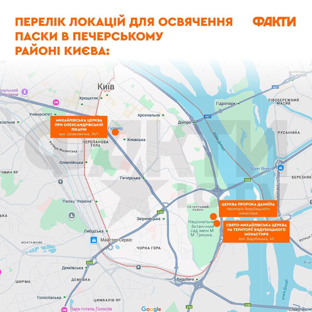 Перечень локаций для освящения паски в Печерском районе Киева: