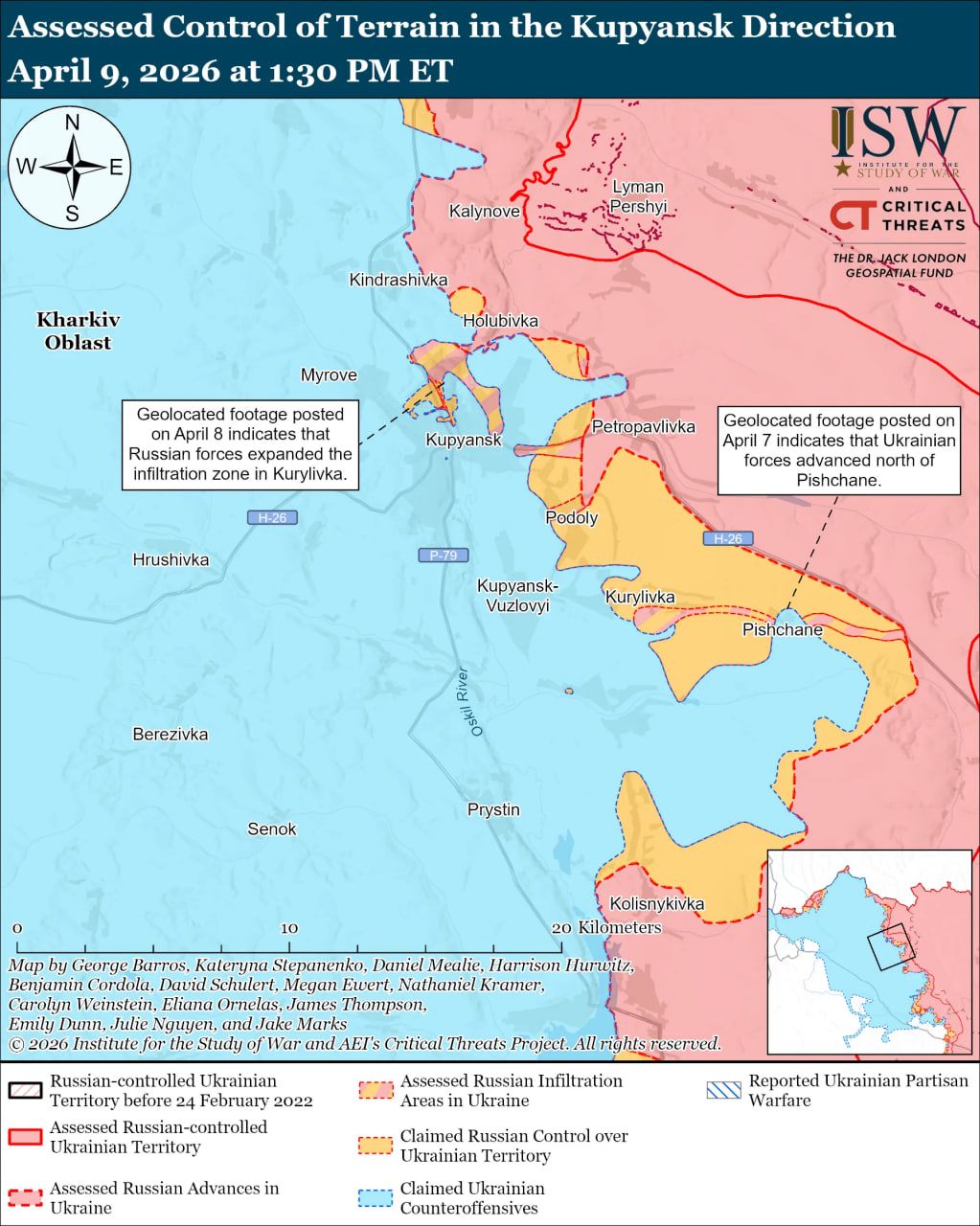 Карта боевых действий в Украине на 10 апреля 2026 года