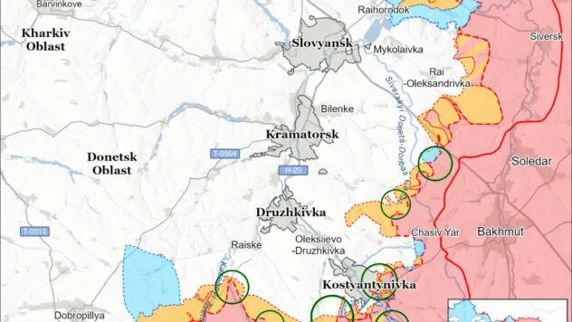 На Славянском направлении в течение вчерашних суток наши защитники остановили три попытки оккупантов продвинуться вперед в сторону Рай-Александровки, Ямполя и Озерного.