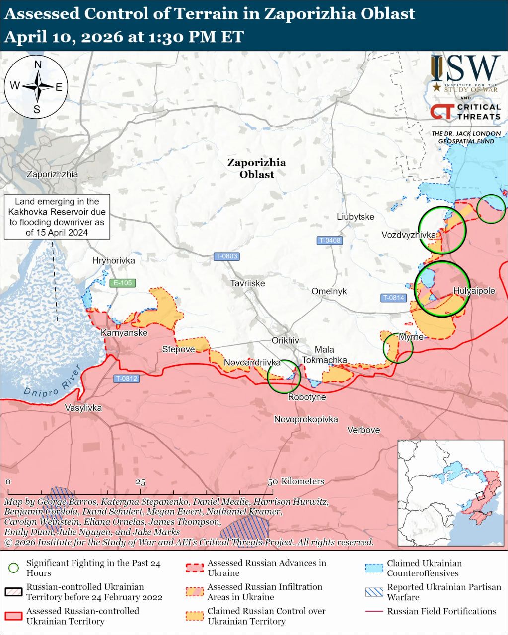 Карта боевых действий в Украине на 11 апреля 2026 года