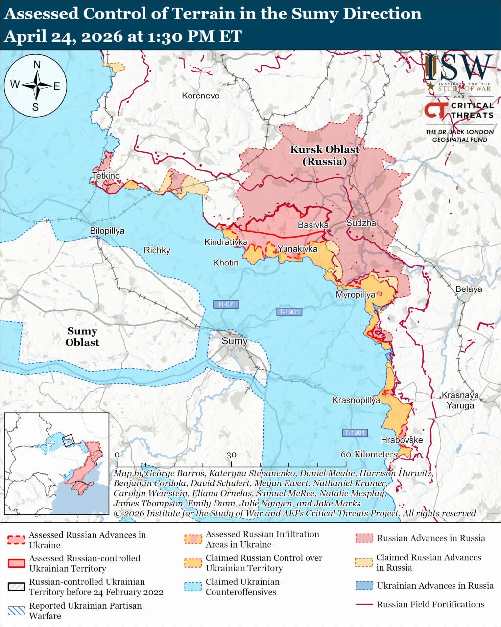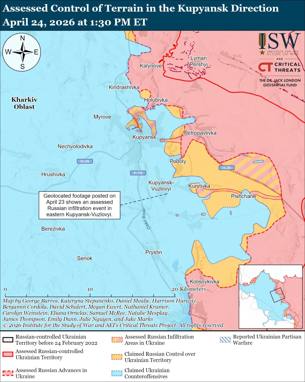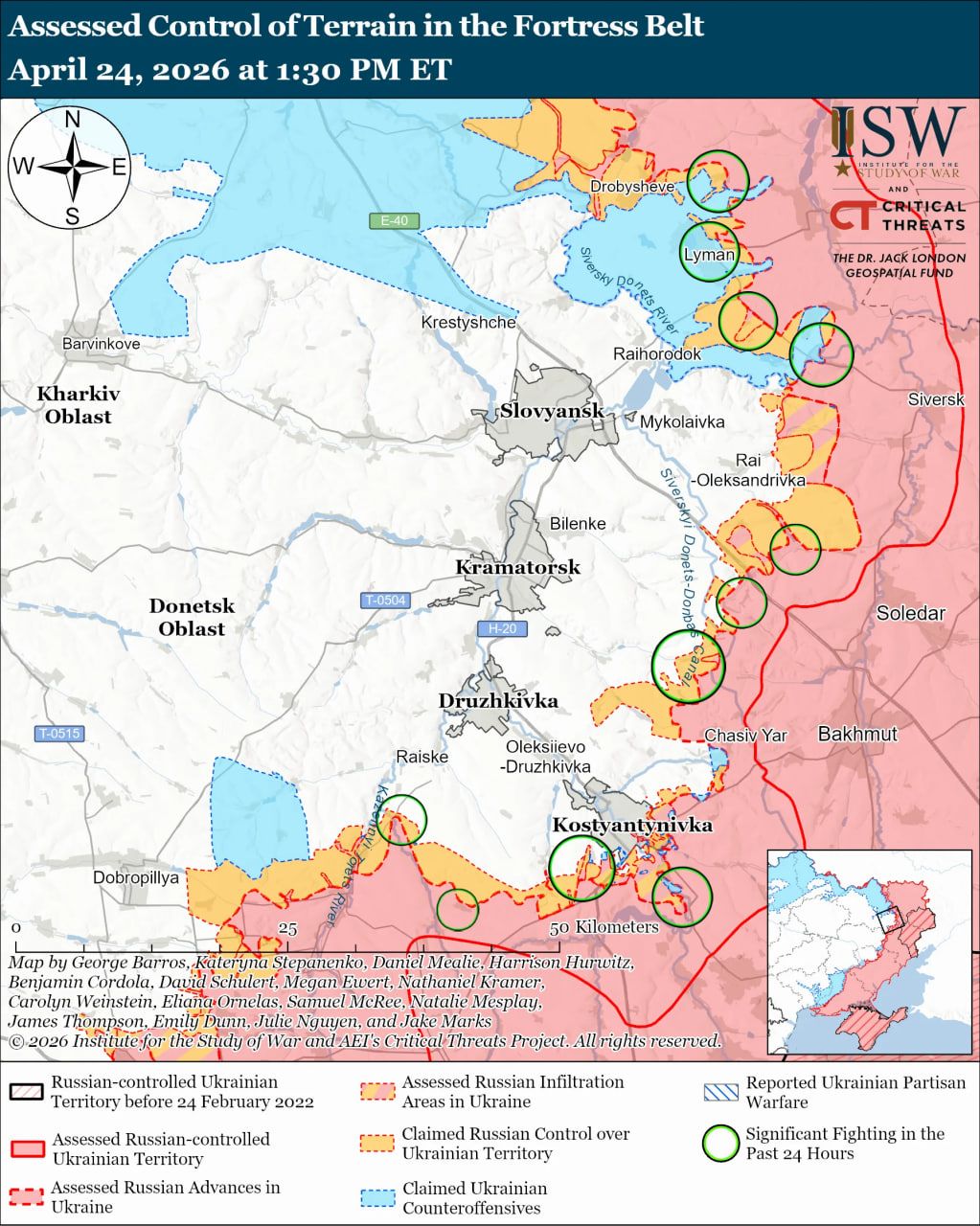 Карта боевых действий в Украине на 25 апреля 2026 года