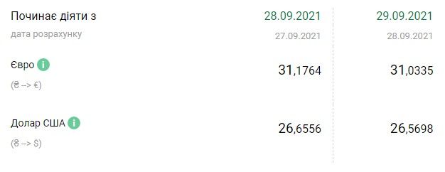 На среду, 29 сентября, Нацбанк установил курс 26,57 грн/1$.