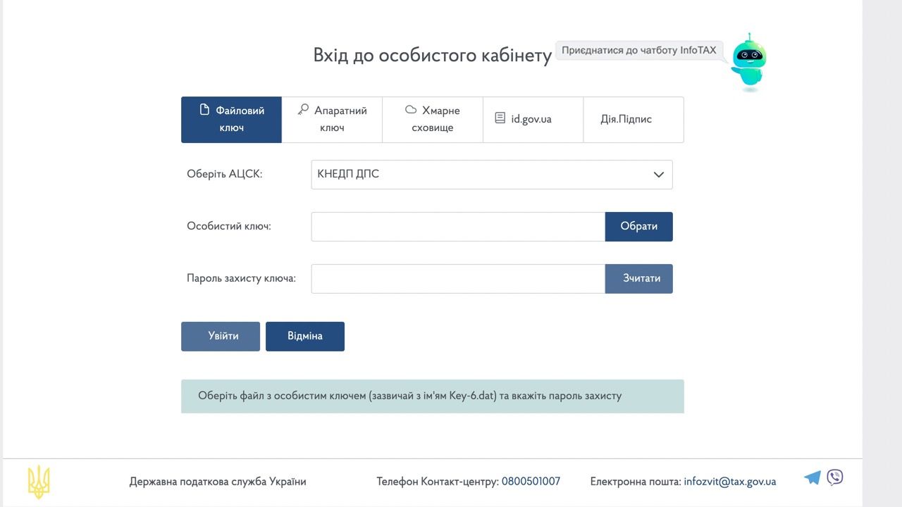 - Зарегистрируйтесь с помощью файлового или аппаратного ключа. Если его нет, можно зайти с помощью Дії.