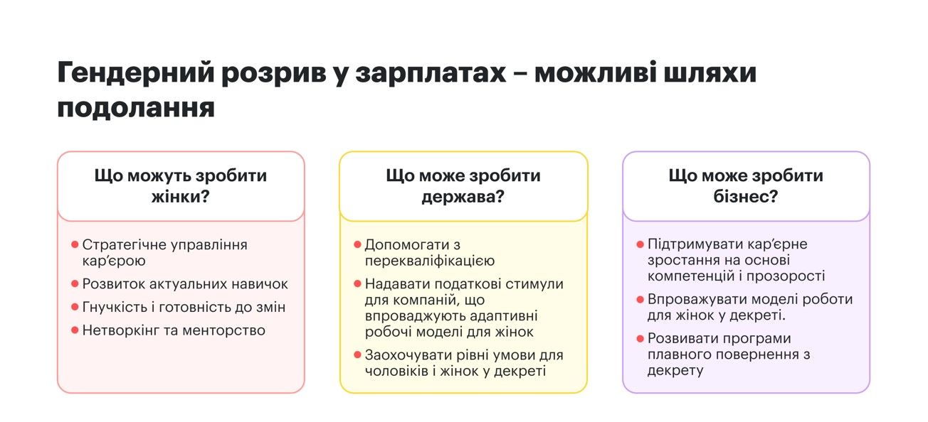 Вита Думанская объяснила, какие именно шаги могут помочь уменьшить гендерный разрыв в оплате труда. Среди них: