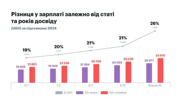 По данным Государственной службы статистики, до войны средний разрыв в заработной плате составлял около 18,6% в пользу мужчин — это означает, что за свою жизнь женщина должна работать в среднем на 6,5 года больше, чтобы получить такой же заработок.