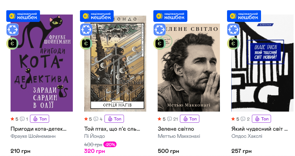 Сейчас же средства Зимней поддержки уже можно использовать на ряд услуг и товаров. Например, в книжных магазинах, с которыми сотрудничает программа. В сети Yakaboo нам подтвердили, что тысячу гривен можно потратить на книги, отмеченные специальной синей снежинкой.