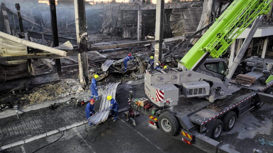 28 июня поисково-спасательные работы в городе продолжаются. Спасатели разбирают поврежденные строительные конструкции с помощью тяжелой инженерной техники и средств малой механизации.