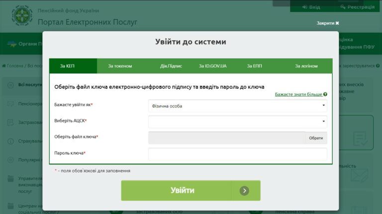 - Войти в Личный кабинет с помощью КЭП, Дія.Підпис или ID.GOV.UA.