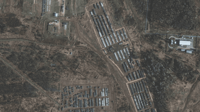 Спутниковые снимки показывают, что ближайшее размещение российских войск всего в 13 километрах от границы с Украиной.