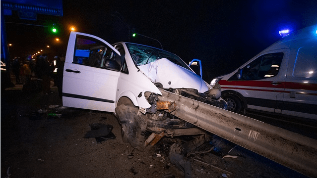 Mercedes виїхав за межі проїжджої частини і влетів у металевий відбійник. Він пройшов мікроавтобус наскрізь.