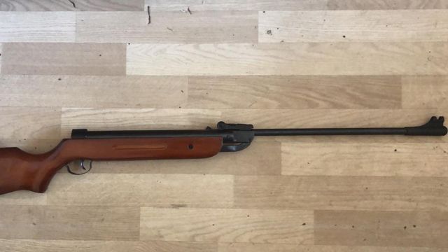 Хлопець скористався відсутністю свого дядька та вирішив розважитися. Він стріляв по стовпчику, який стояв на вулиці поблизу будинку, але промахнувся.