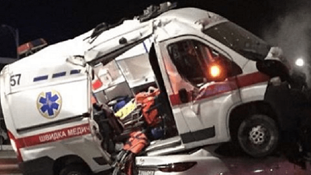 Після зіткнення швидка кілька разів перекинулася і приземлилася на дах легковика, що їхав у зустрічному напрямку.