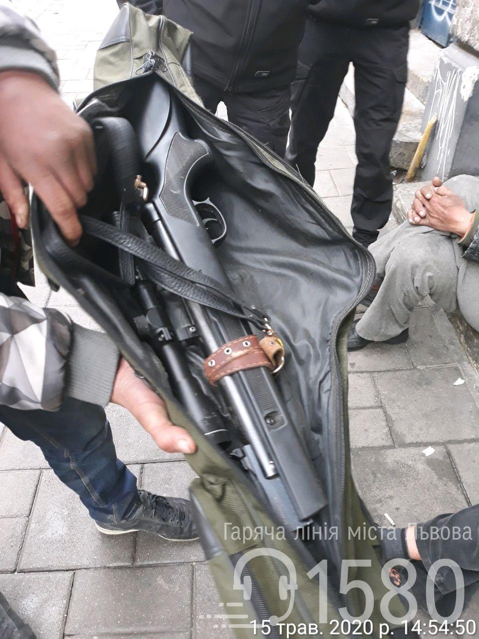 Патруль Муніципальної варти помітив на вулиці чоловіка, який неадекватно поводився і під час обшуку у нього було виявлено рушницю з прицілом.