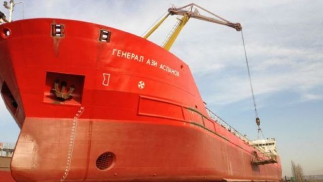 Російський танкер Генерал Азі Асланов, у якого під час переходу по Азовському морі стався вибух, відбуксирували на якірну стоянку.