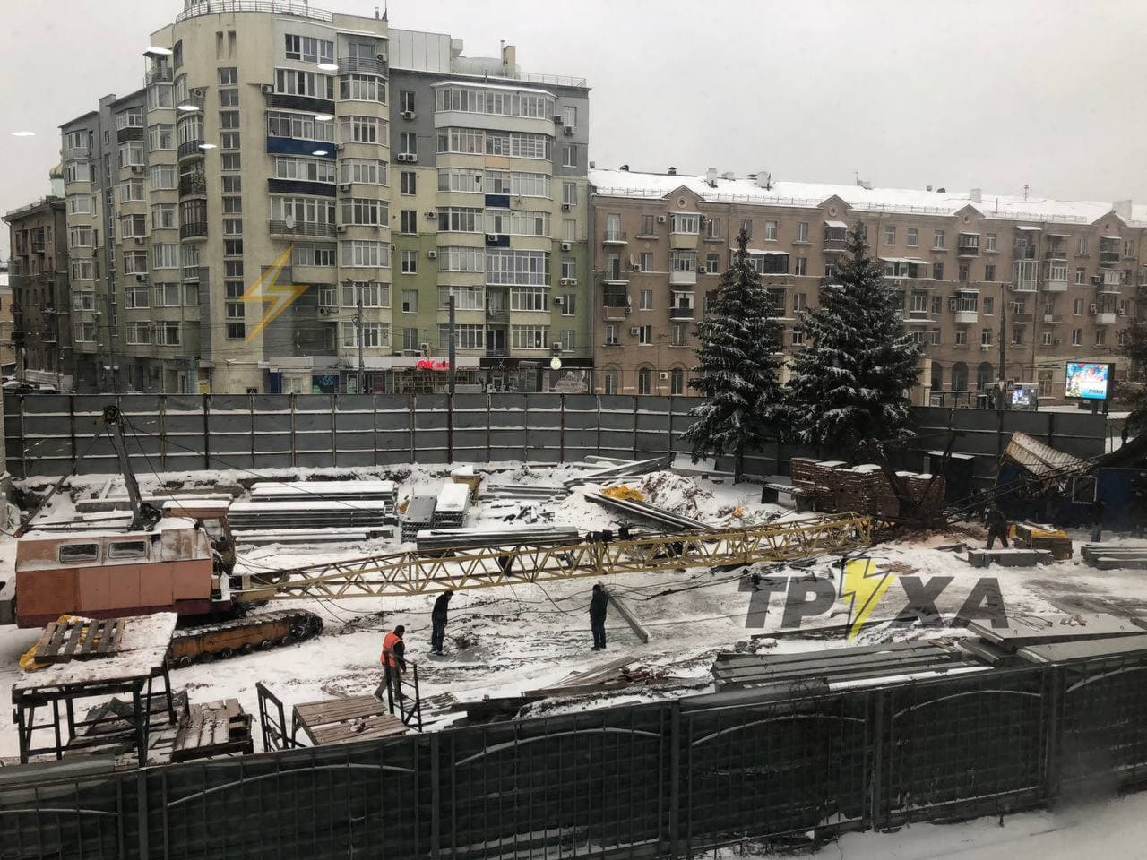 У центрі Харкова будівельний кран впав на вагончик із робітниками