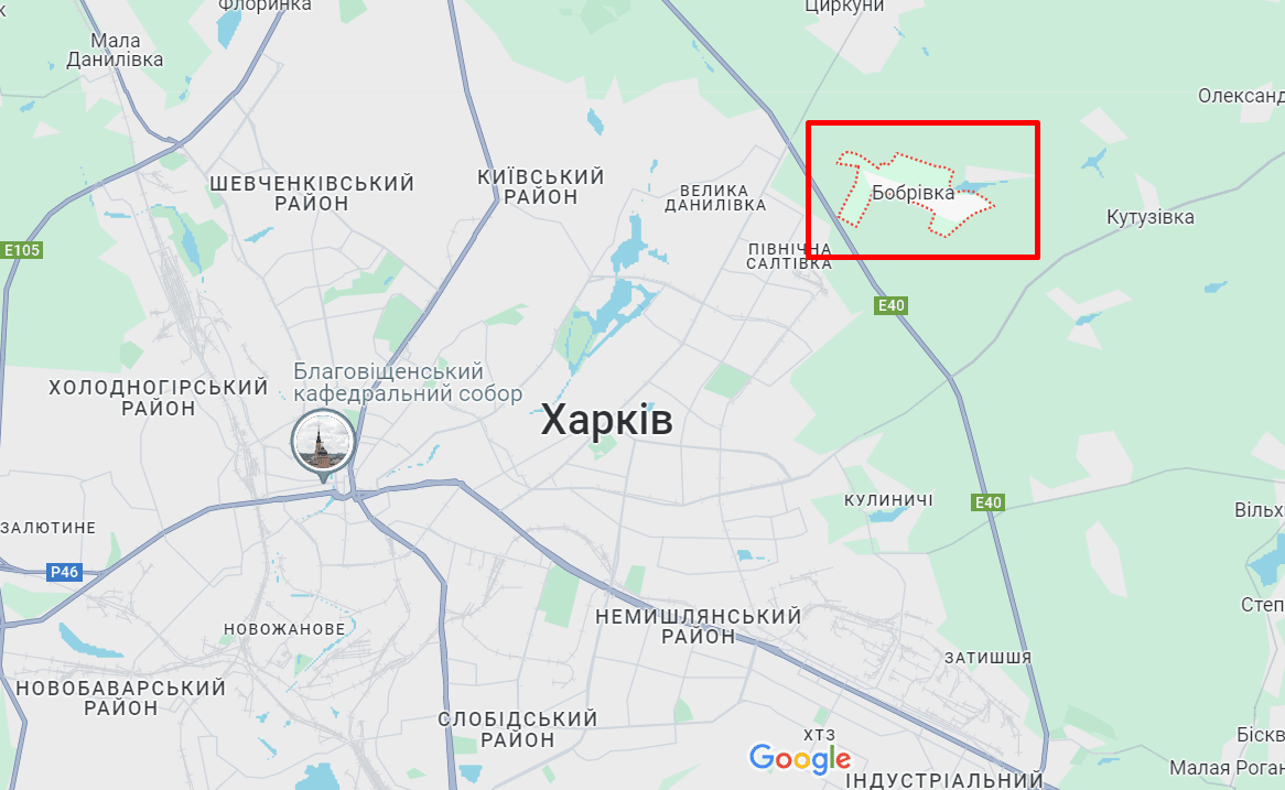 Село Бобрівка розташоване на східній околиці міста Харків.