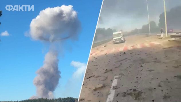На кадрах, які поширили у соціальних мережах, можна побачити, як після вибуху біля Житомира в небі з’явився стовп вогню та диму.