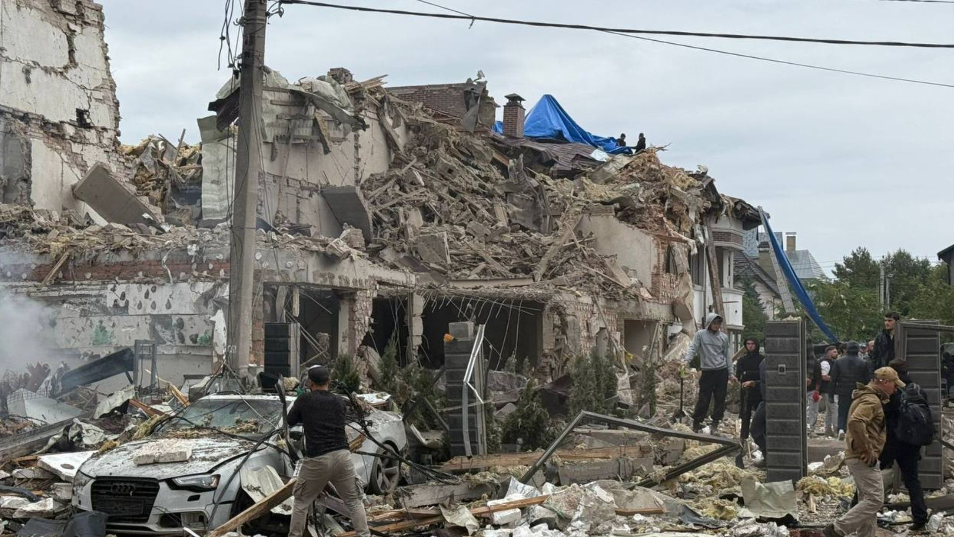 Зараз на місці влучання тривають роботи з ліквідації наслідків атаки.
