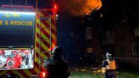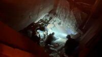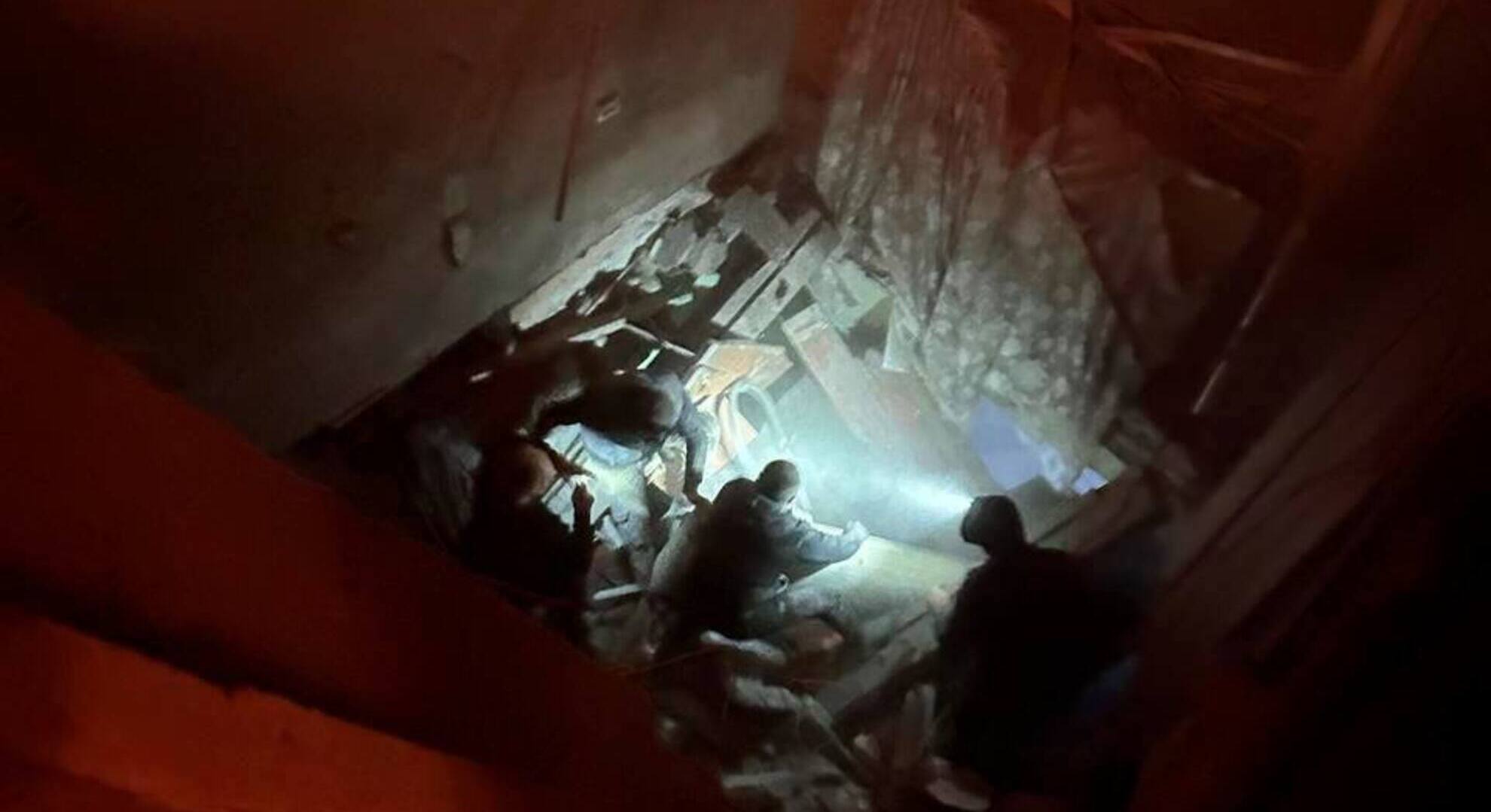 Частково зруйновані дах та перекриття в одному з під’їздів чотириповерхівки.