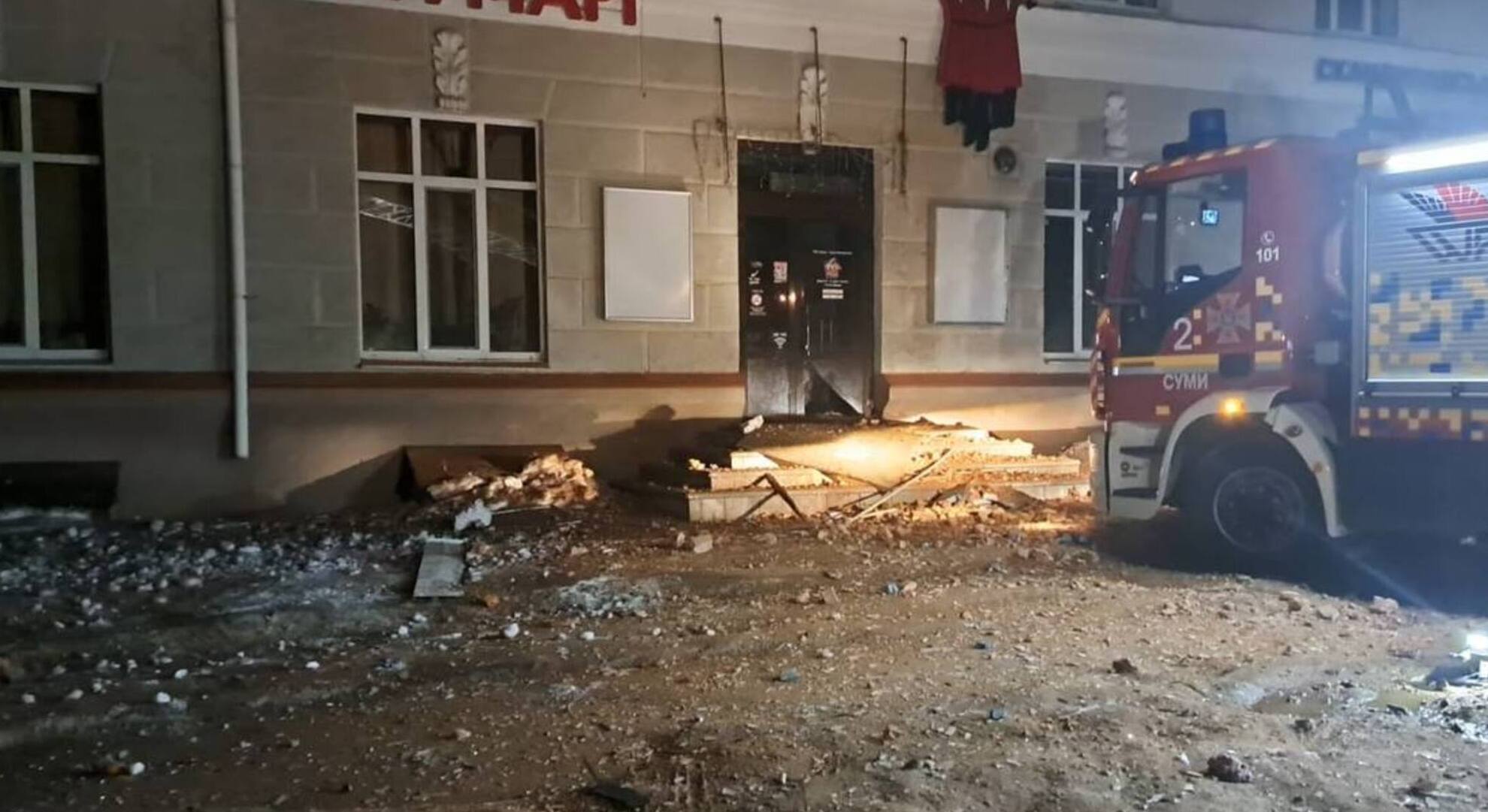 Атака на Суми: ворог вдарив по готелю в центрі міста, евакуйовано десятки людей