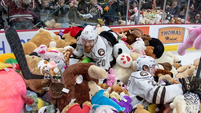 Під час матчу між Херші Беарс та Хартфорд Вулф Пек в рамках матчу Американської хокейної ліги пройшла щорічна благодійна акція зі збору іграшок.