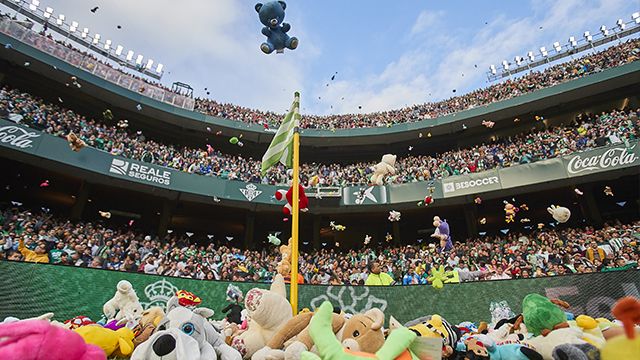 На стадіоні Беніто Вільямарін у перерві матчу 18-го туру Ла Ліги між Бетісом та мадридським Атлетіко, фанати господарів закидали поле м’якими іграшками.