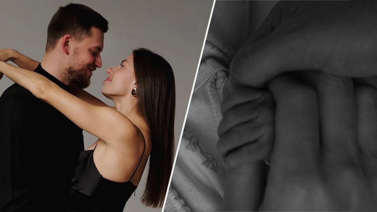Подружжя опублікувало зворушливий чорно-білий знімок, на якому немовля тримає за руки своїх батьків. Закохані поки що вирішили не показувати обличчя новонародженої доньки.