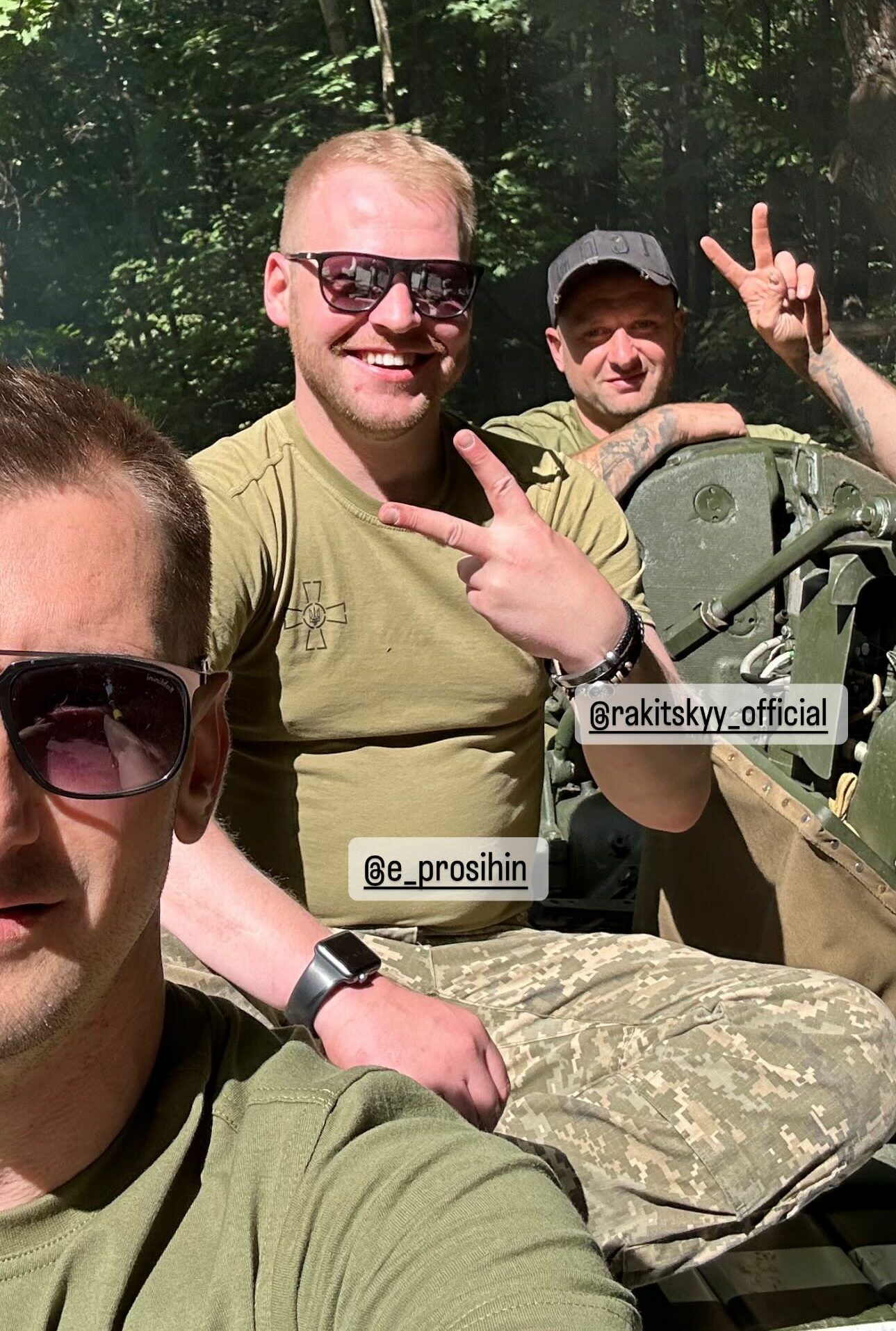 Кадри були зазнімковані в лісовій місцевості. На одному з відео показано, як Ярослав проїхався з військовими на танку.