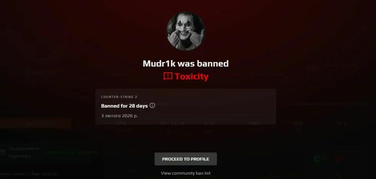 Це призвело до того, що акаунт Мудрика було тимчасово забанено на платформі FACEIT на 28 днів через “токсичність”.