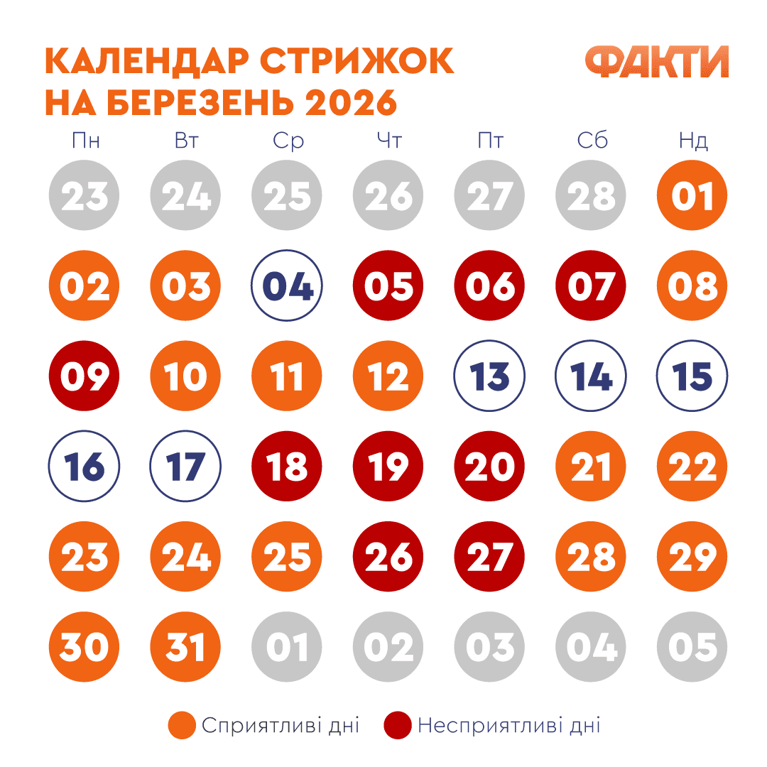 Сприятливі дні для стрижки у березні 2026 року припадають на 1-3, 8, 10-12, 21-25, 28-31 число. Ці дати підходять як для зміни довжини, так і для фарбування або укладання.