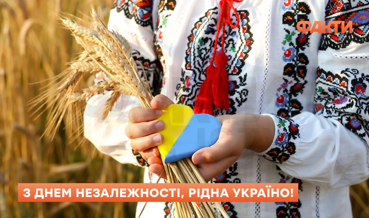 У такий день особливо хочеться ділитися теплими словами й побажаннями, які додають сили та єднають. Факти ICTV підготували привітання з Днем Незалежності України в картинках, віршах і прозі, щоб ви могли надіслати їх рідним, друзям та колегам.