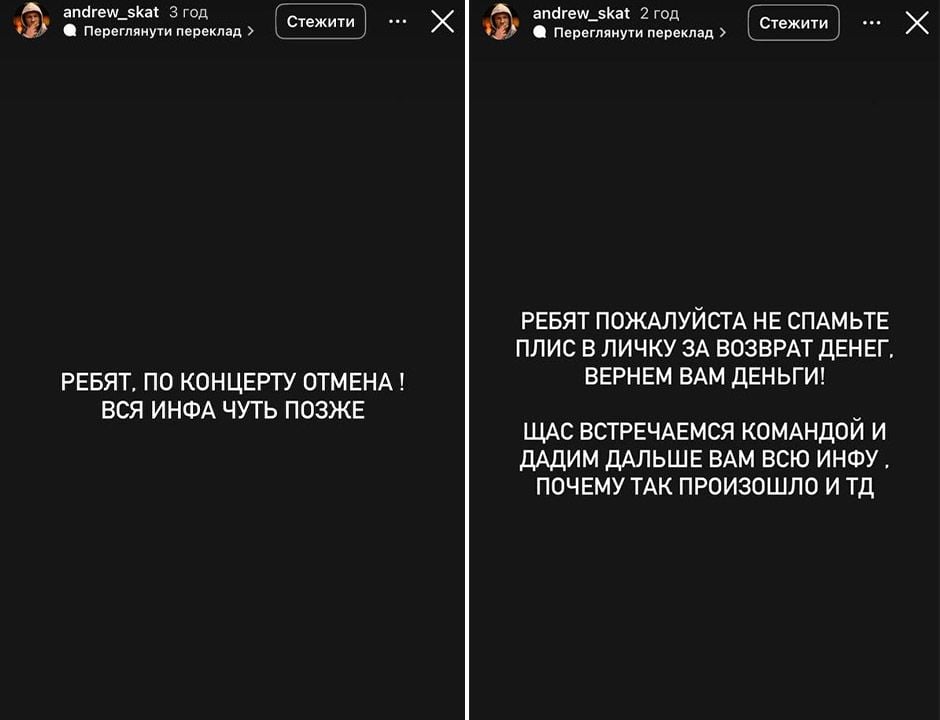 Згодом виконавець Andrew Skat заявив, що концерт скасовано, а кошти за квитки буде повернуто.