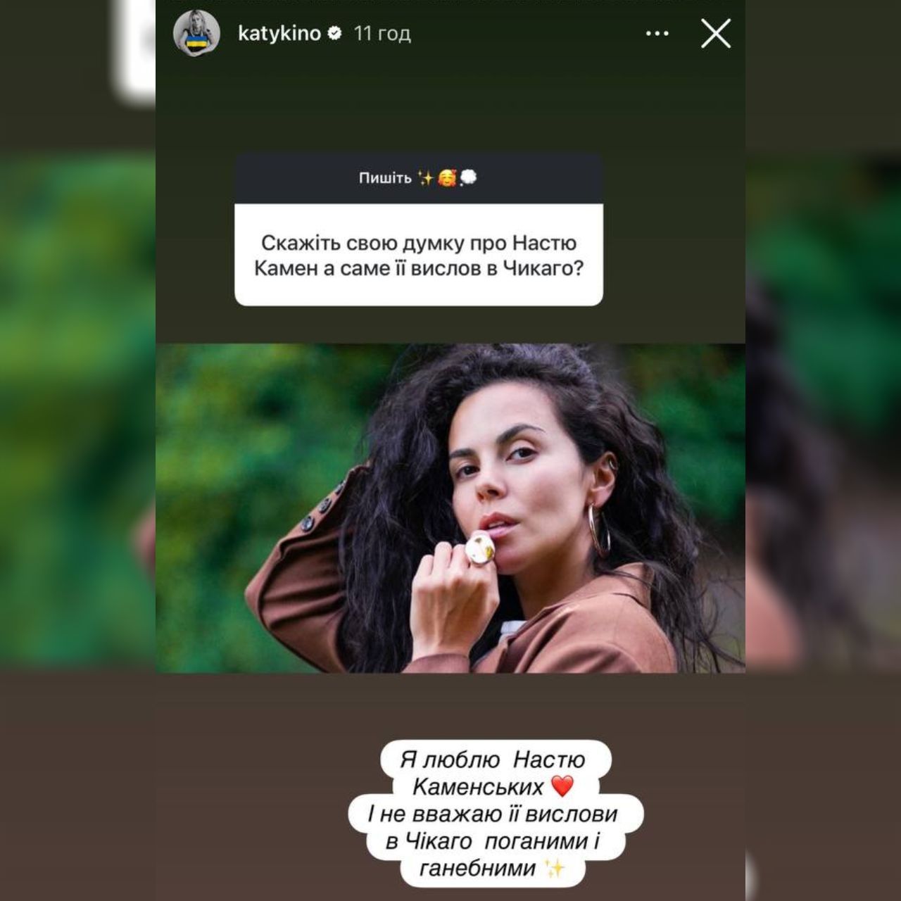 Про свою позицію акторка заявила в сториз, відповідаючи на питання шанувальників. Зокрема, дехто з підписників поцікавився, як вона ставиться до Каменських та її заяв.