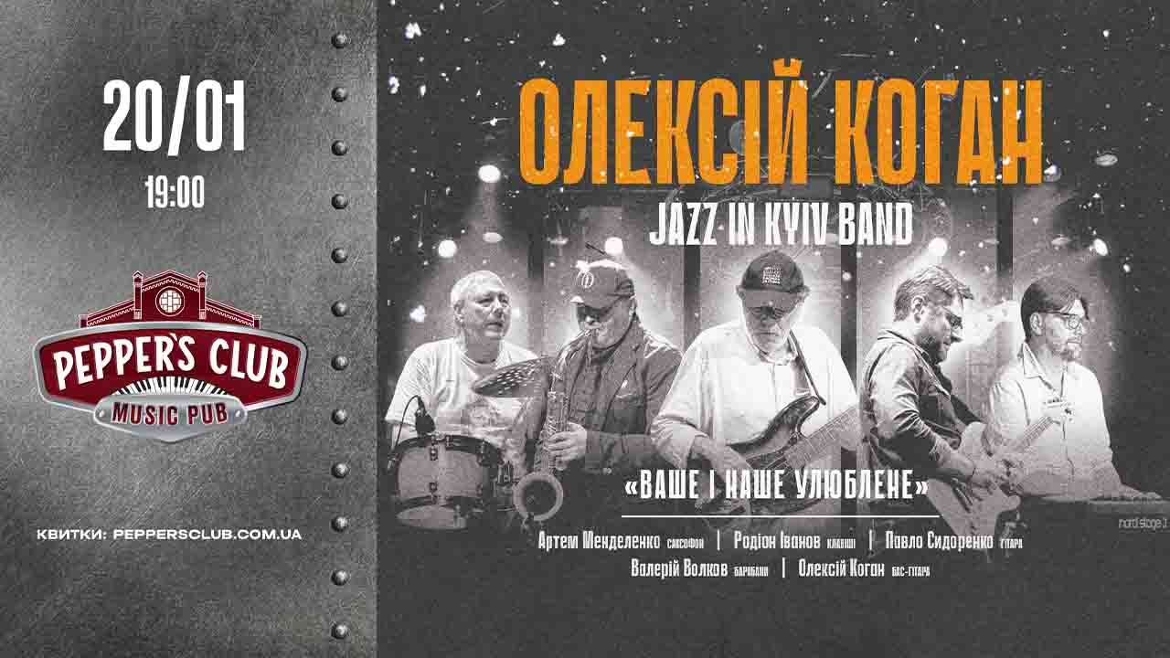 20 січня в Pepper’s Club — джазовий вечір із легким блюзовим настроєм. Олексій Коган та Jazz in Kyiv Band представлять програму Ваше і Наше улюблене — добірку знайомих композицій у камерному форматі.