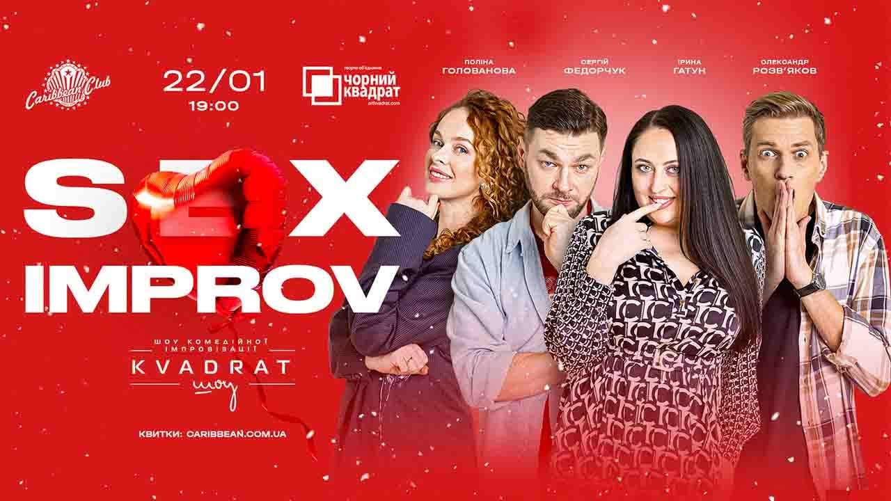 На сцені — актори Kvadrat Шоу, учасники першого в Україні імпровізаційного театру Чорний квадрат, який працює з 1991 року й понад десятиліття розвиває формат імпровізаційних вистав у Caribbean Club. Цього вечора гратимуть актори топ-ліги: Ірина Гатун, Сергій Федорчук, Поліна Голованова та Олександр Розвяков.