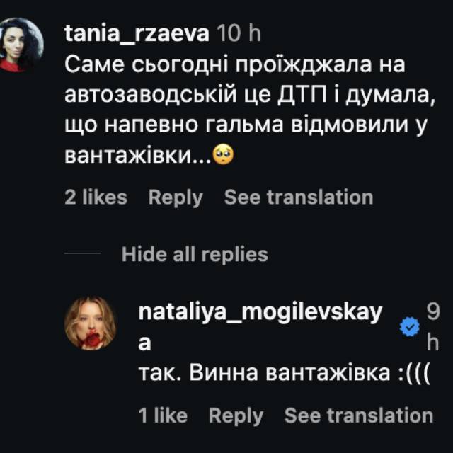 Підписники згадали й про іншу дорожню пригоду за участю Наталії Могилевської. У 2007 році артистка потрапила в серйозну аварію на проспекті Перемоги в Києві.