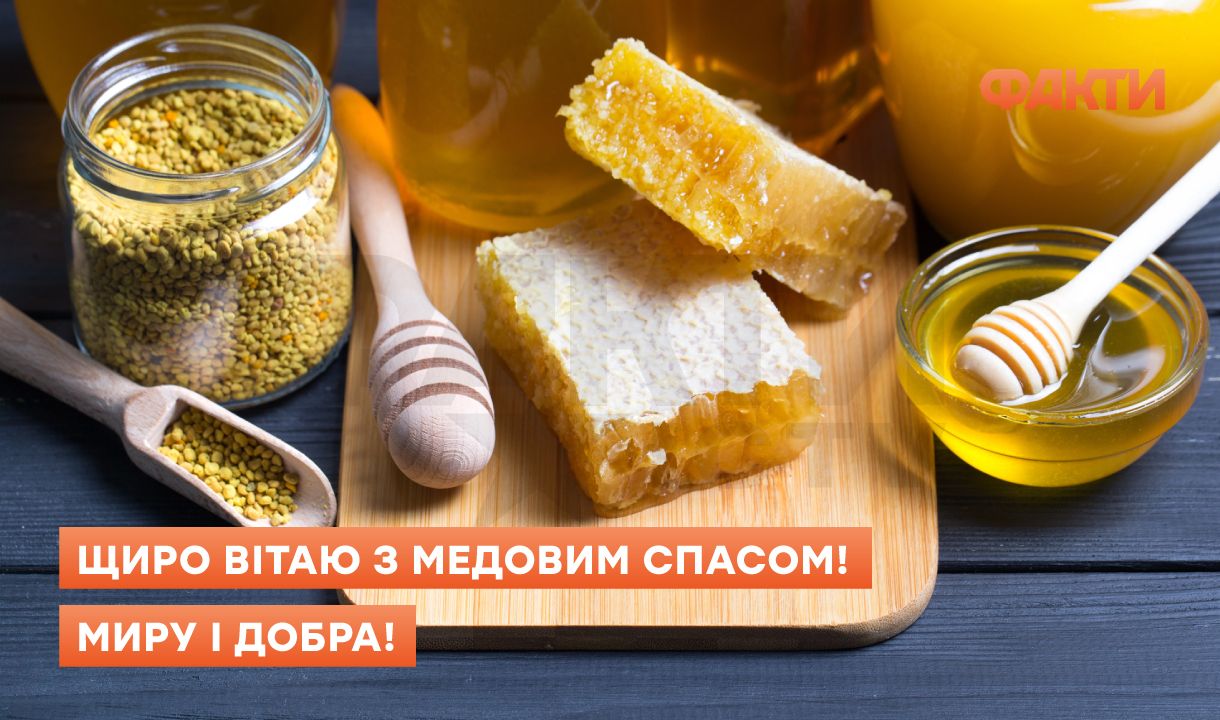 Нехай Медовий Спас подарує безліч позитивних емоцій і сотні яскравих моментів! Бажаю миру, достатку, посмішок і кохання! Нехай у твоїй душі панують гармонія і щастя! Нехай здоров’я буде міцним, а життя — солодким, немов мед!