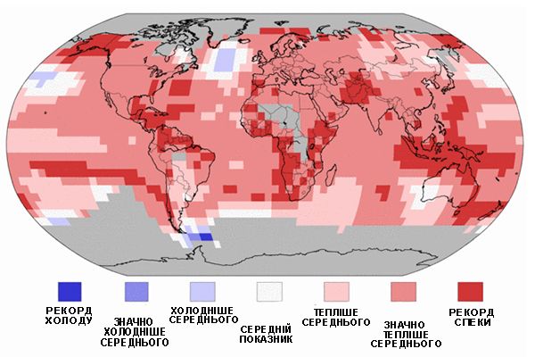Середня температура на планеті була на 0,94 градуса за Цельсієм вище, ніж у середньому за ХХ століття.