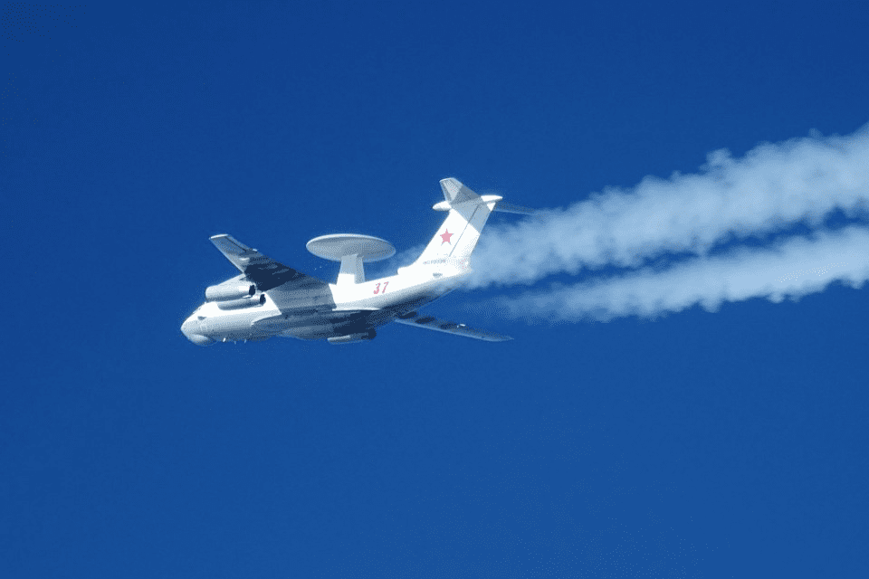 Там вони діяли з російським літаком дальнього радіолокаційного виявлення та управління A-50, який також супроводжувався винищувачами.
