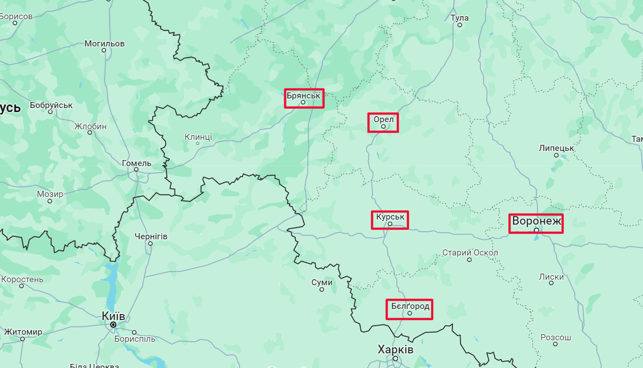 Наразі відомо, що в Бєлгородській області горіла електропідстанція, в Орловській – пошкоджена місцева електростанція, у Курській – лінії електропередачі, у Воронезькій області – об’єкт комунальної інфраструктури.