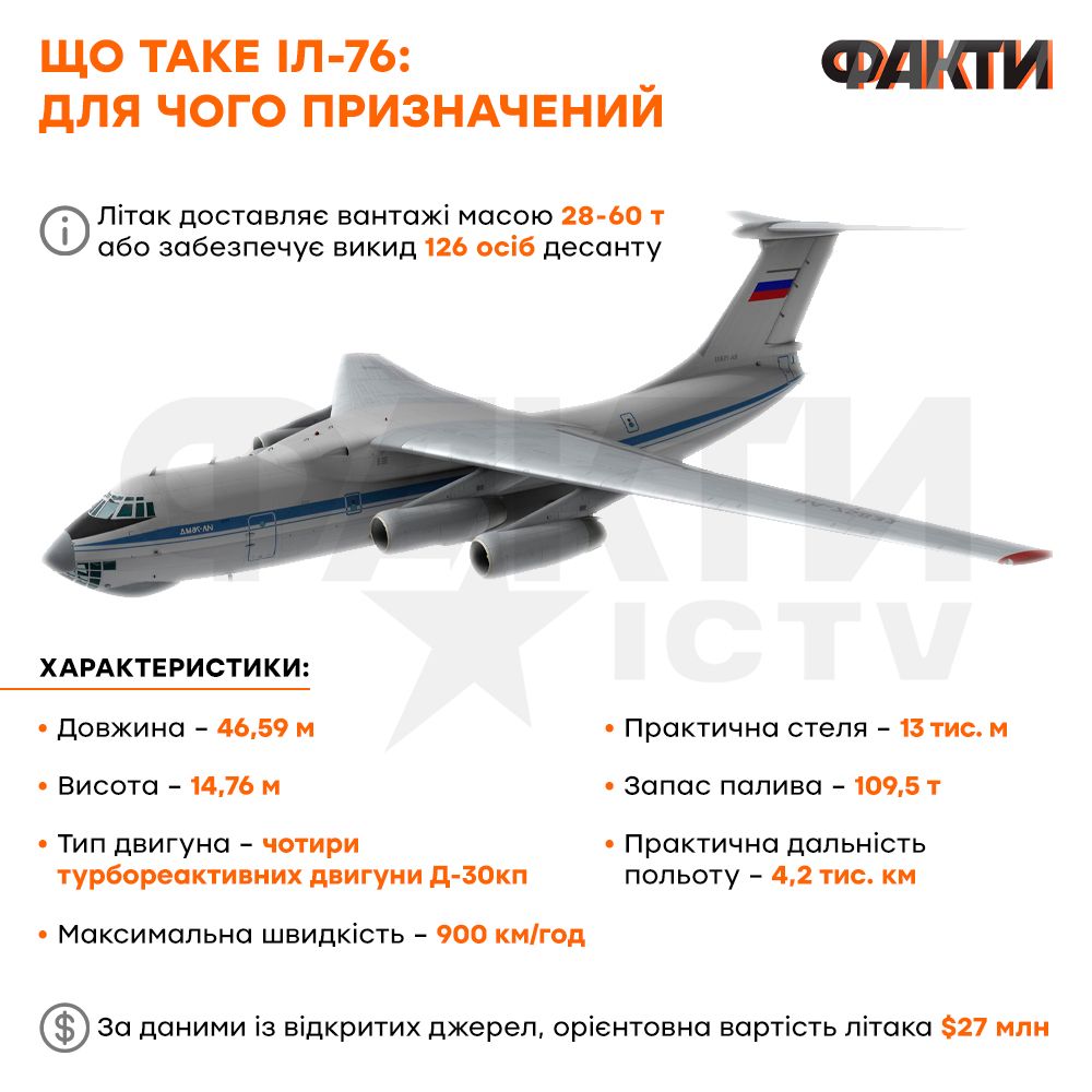 Що відомо про літаки Іл-76, скільки їх має Росія, а також як вони використовуються у війні та яку становлять загрозу для України – читайте в матеріалі на Фактах ICTV.