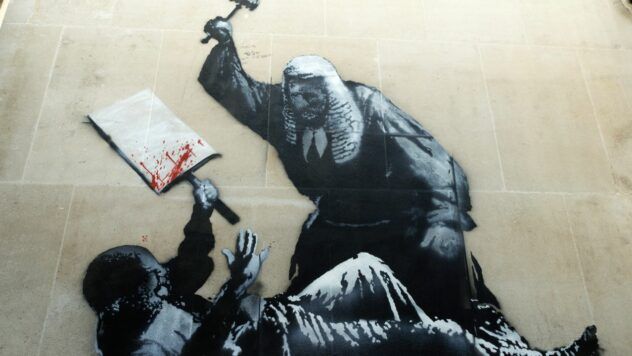 Не протримався й тижня: мурал Бенксі стерли зі стіни Королівського суду