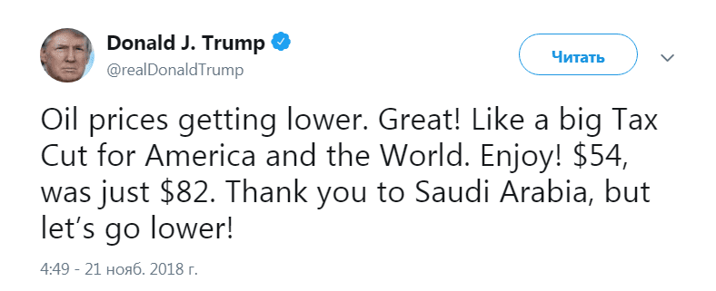 Крім того, Дональд Трамп подякував Саудівській Аравії за зниження вартості і закликав продовжувати таку тенденцію.