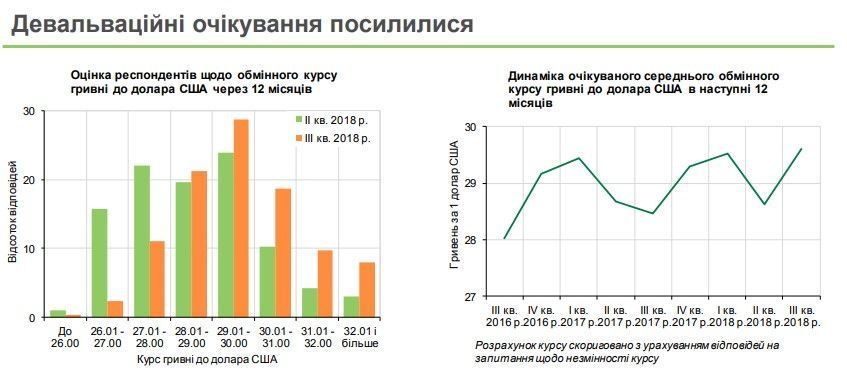 Такий прогноз топ-менеджерів українських компаній, яких у третьому кварталі опитав Нацбанк. Знецінення гривні очікують 90,3% респондентів.
