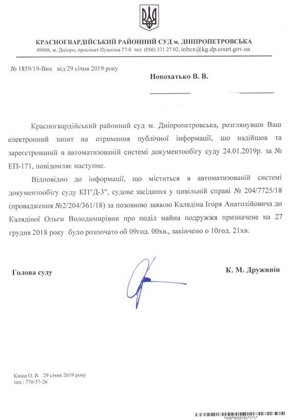 Згідно з відповіддю за підписом голови Червоногвардійського суду Дружиніна, засідання почалося 27 грудня о 09.00, а завершилося – о 10.21. До початку засідання в Жовтневому суді у адвоката Немировського було три з половиною години.